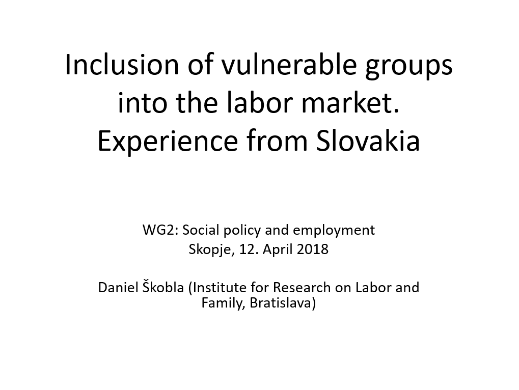 Презентација „ Вклучување на ранливите групи во пазарот на труд. Словачко искуство“ Од Даниел Шкобла