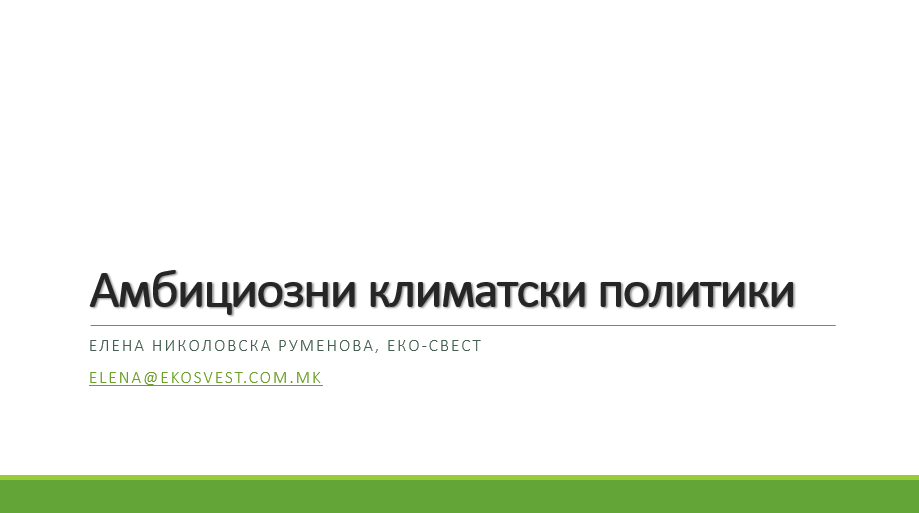 Презентација: „Амбициозни климатски политики“ од Елена Николовска Руменова
