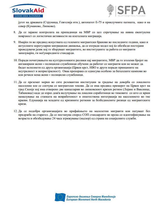 Препораки седма сесија на Работна група 4 – Правда, слобода и безбедност (Поглавје 24) – „Чекајќи на ФРОНТЕКС – Безбедноста на границите низ призмата на мешаните миграциски текови“