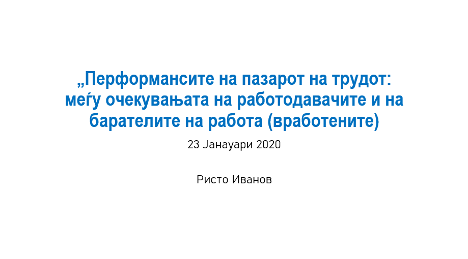 Презентација: „Перформансите на пазарот на трудот: Меѓу очекувањата на работодавачите и на барателите на работа (вработените)“ од Ристо Иванов