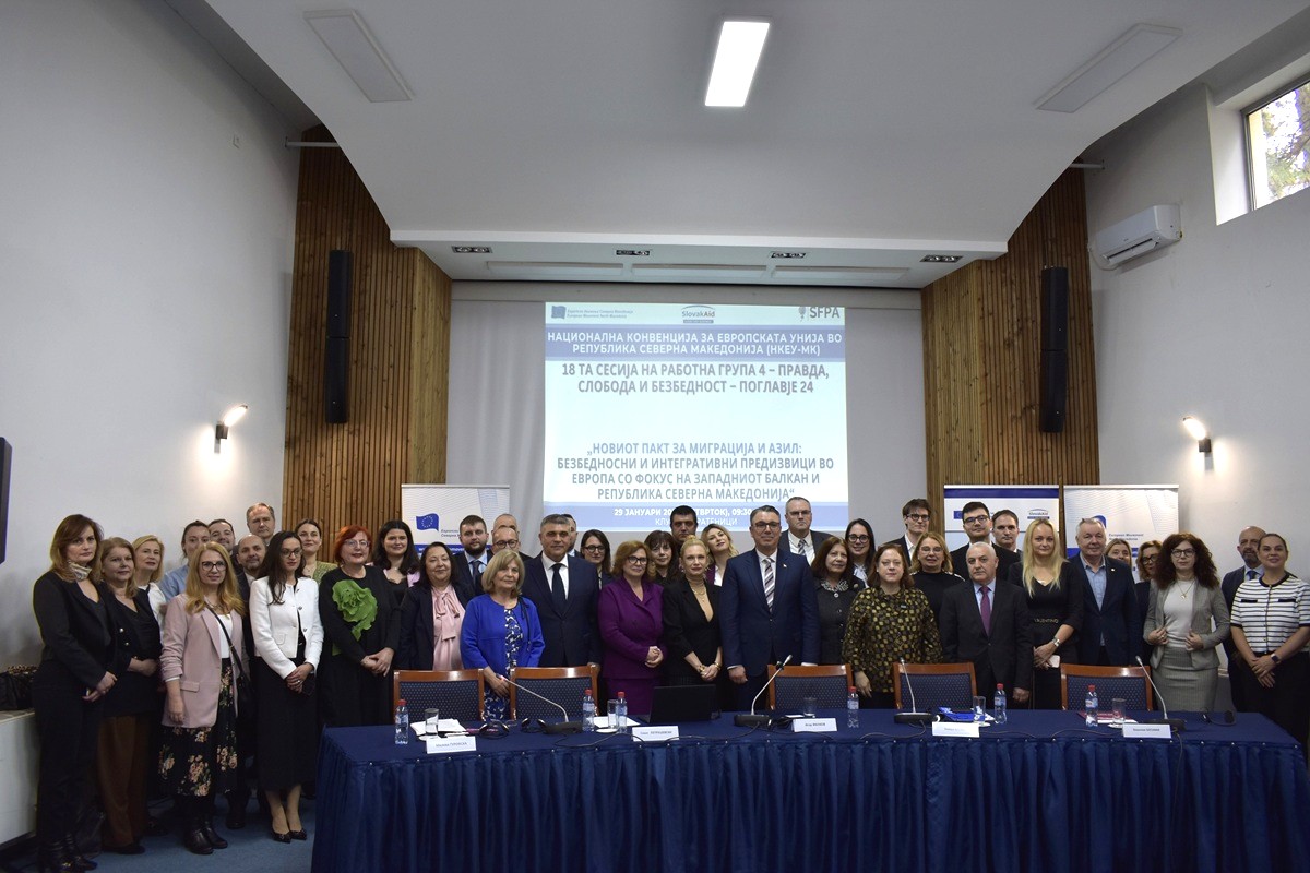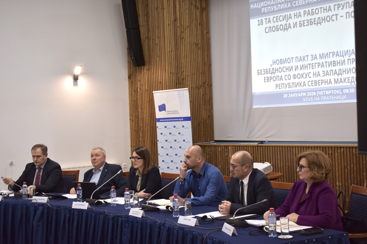 Вчера, 29.01.2026, во „Клубот на пратеници“, успешно ја одржавме 18. сесија на Работната група 4 – Правда, слобода и безбедност (Поглавје 24), посветена на темата „Новиот пакт за миграција и азил: безбедносни и интеграциски предизвици во Европа, со фокус на Западниот Балкан и Република Северна Македонија“. На настанот учествуваа над 75 претставници од институциите, граѓанскиот сектор, академската заедница и дипломатскиот кор, со цел да се разменат искуства и да се формулираат заеднички пристапи кон една од најкомплексните политики на Европската унија.