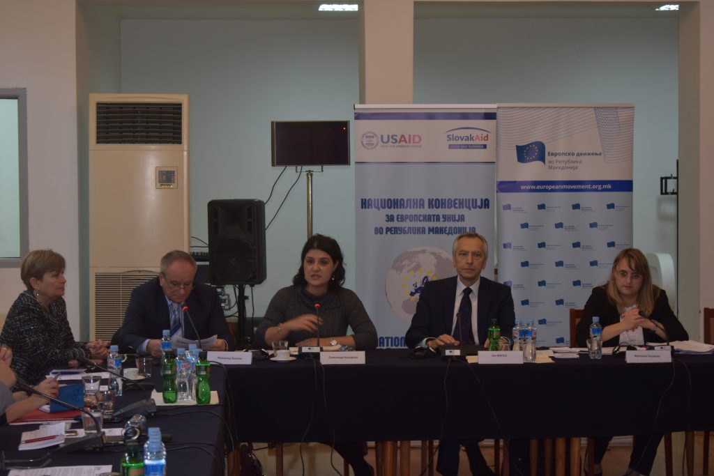 “This Session of the National Convention, together with the expert team, underlines the need for building working legal institutions and just state, which is one of the main preconditions for membership in the European Union” said prof. Mileva Gjurovska, National coordinator of NCEU-MK and president of EMRM, during the opening address.