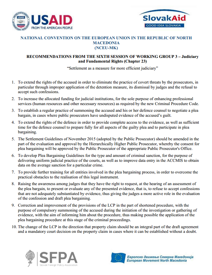 Recommendations from the Sixth session of Working group 3 – Judiciary and Fundamental Rights (Chapter 23) – “Settlement as a measure for more efficient judiciary”