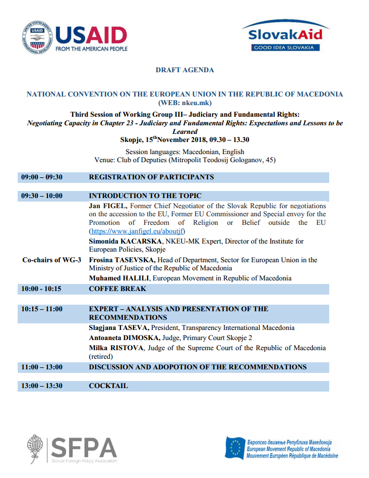 Agenda – Third Session of Working group 3 (Chapter 23) – Negotiating Capacity in Chapter 23 – Judiciary and Fundamental Rights: Expectations Learned and Lessons to be