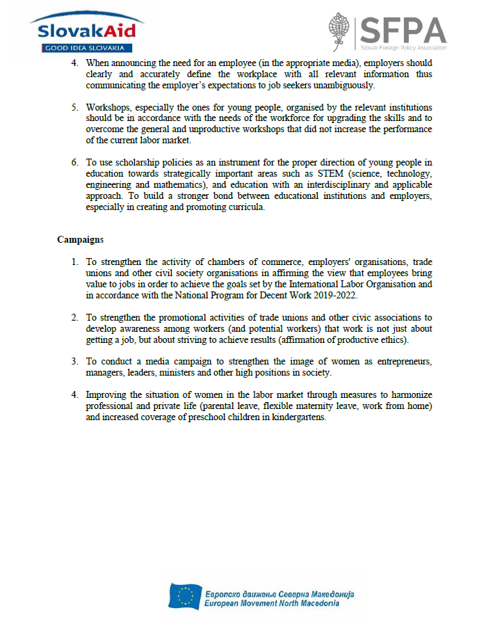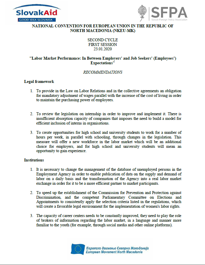 Recommendations from the seventh session of Working Group 2 – Social Policy and Employment (Chapter 19) – “Labor Market Performance: In Between Employers’ and Job Seekers’ (Employees’) Expectations”