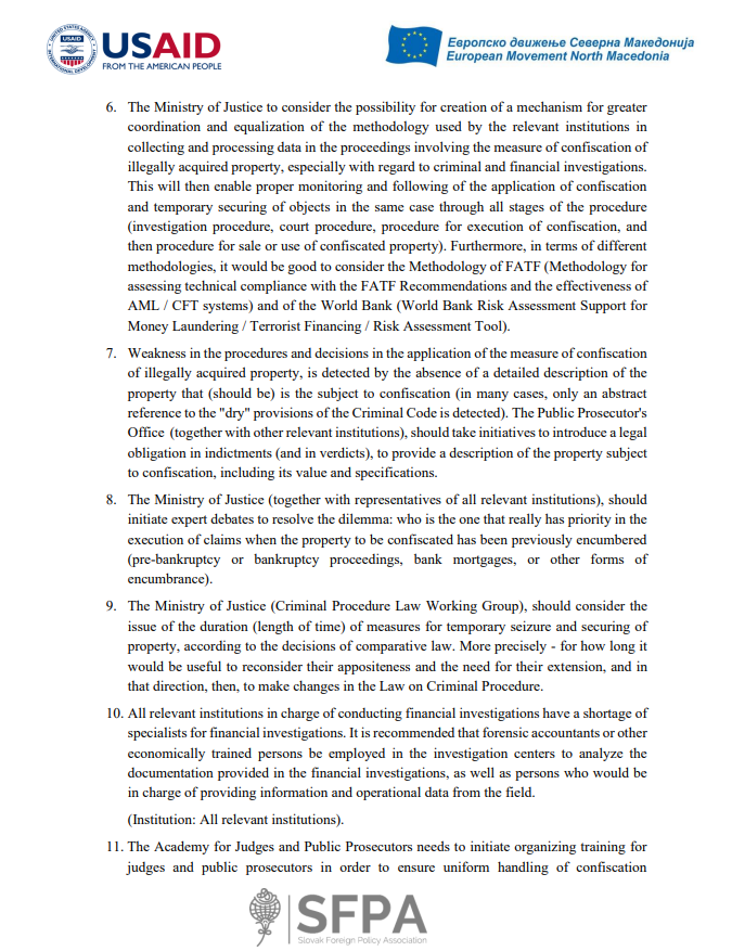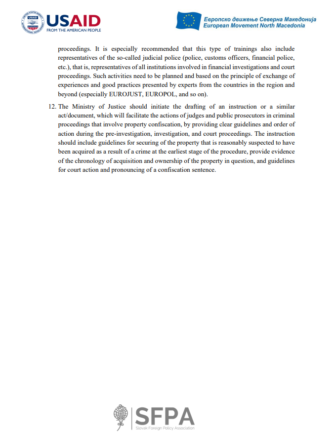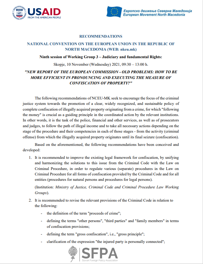 Recommendations from the ninth session of Working group 3 – Judiciary and Fundamental rights (Chapter 23) – “New report of the European commission – old problems: how to be more efficient in pronouncing and executing the measure of confiscation of property?”
